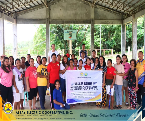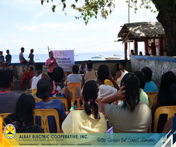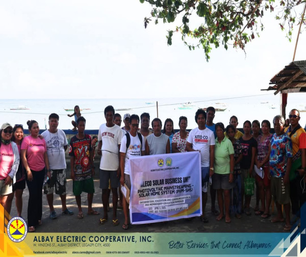 Personal na binisita kan mga personahes kan ALECO an Brgy. Malobago sa banwaan kan Rapu-Rapu, Albay para ikondusir an Information, Education and Communication (IEC) dangan Pre-Membership Education Seminar (PMES) para sa Photovoltaic Mainstreaming o Solar Home System na programa kan National Electrification Administration asin Albay Electric Cooperative, Inc.